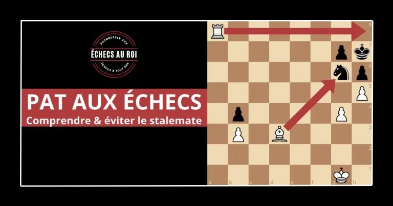Le pat fait partie des cas de partie nulle qu’il faut bien distinguer de l’échec et mat quand on débute. Si vous coincez le Roi adverse sans l’attaquer et bloquez tous ses autres coups légaux, la partie est déclarée nulle.